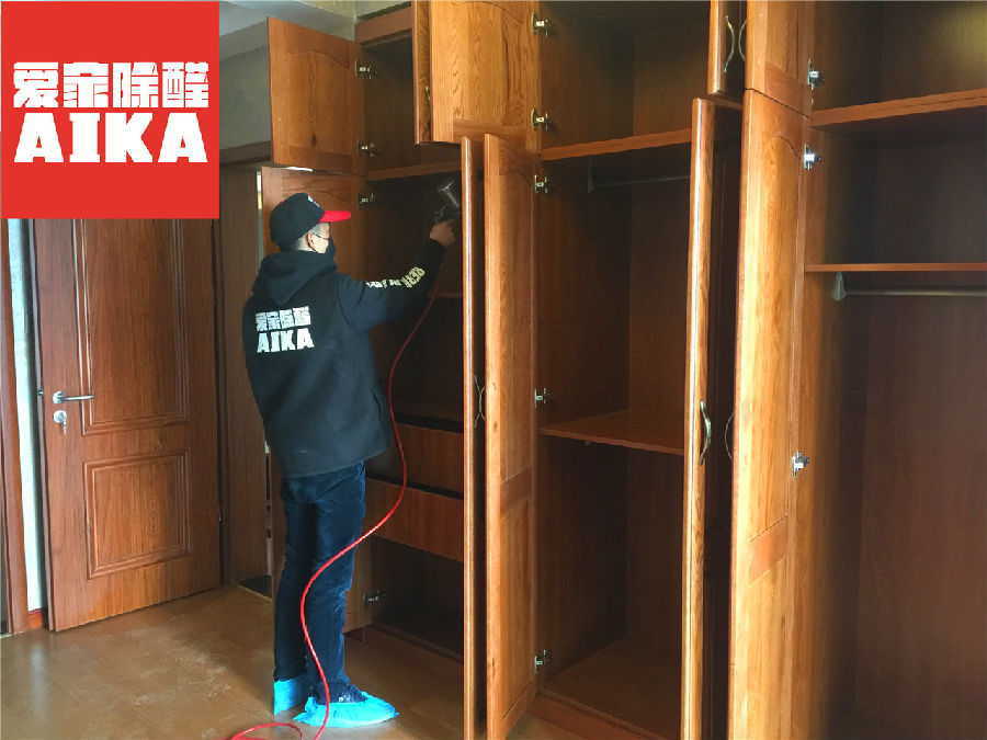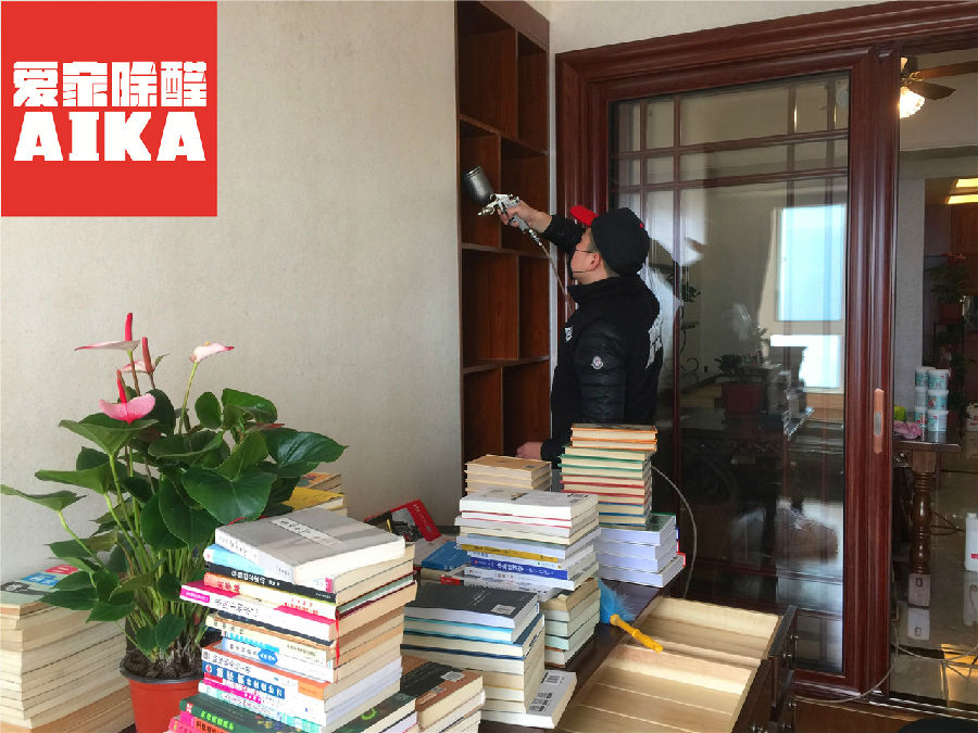 樊先生家的家具主要以購置的實木家具和自己定做的木質家具為主,因為剛剛裝修結束不久,感官上味道非常大,我們為其制定了專項的除甲醛方案,針對房間內的所有污染源進行專項治理。