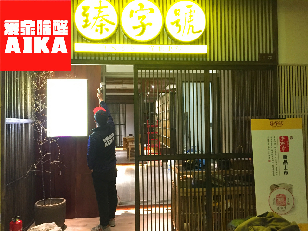 西北國際茶城臻字號店近日裝修一新,由于現場用了很多的木制家具,所以現場味道非常的大,茶店老板非常注重環保,為了能夠在開業的時候給客戶提供一個非常愜意的品茶環境,所以特邀我們愛家除醛為其茶店進行專業室內除甲醛。