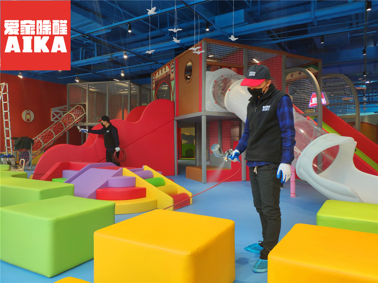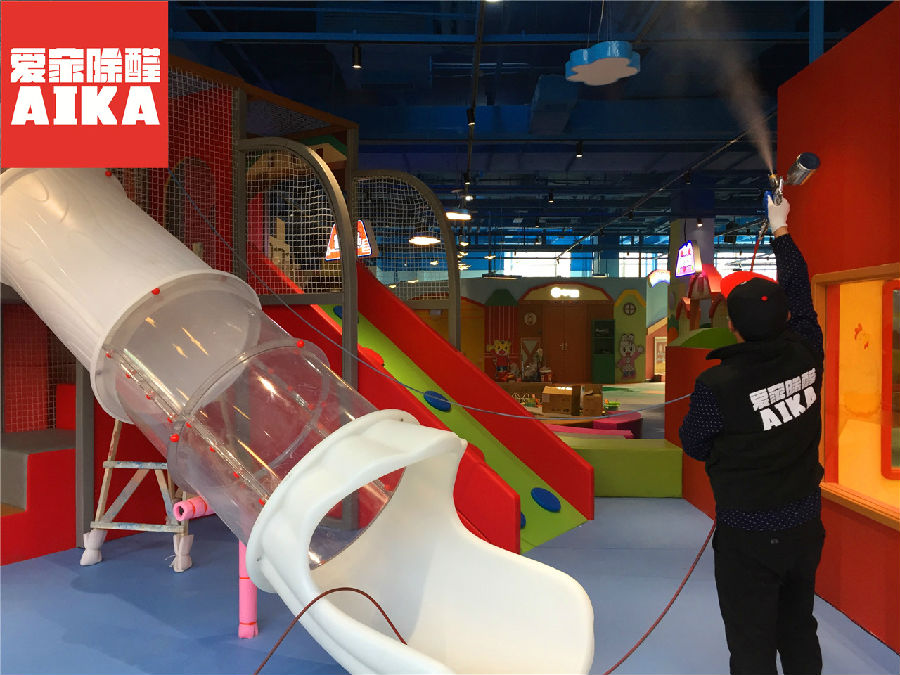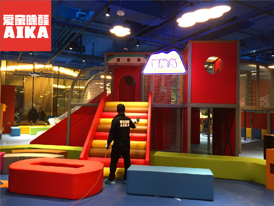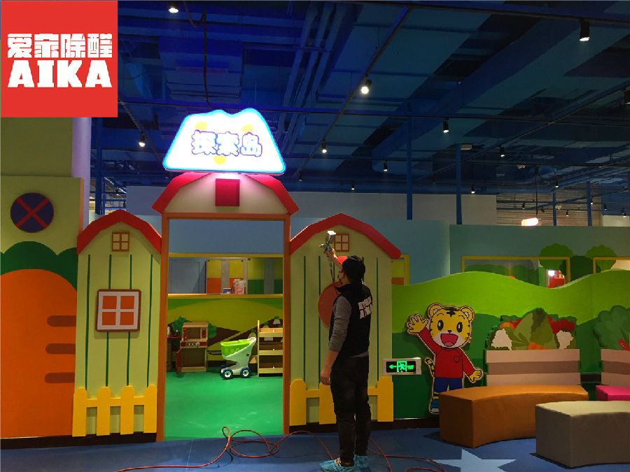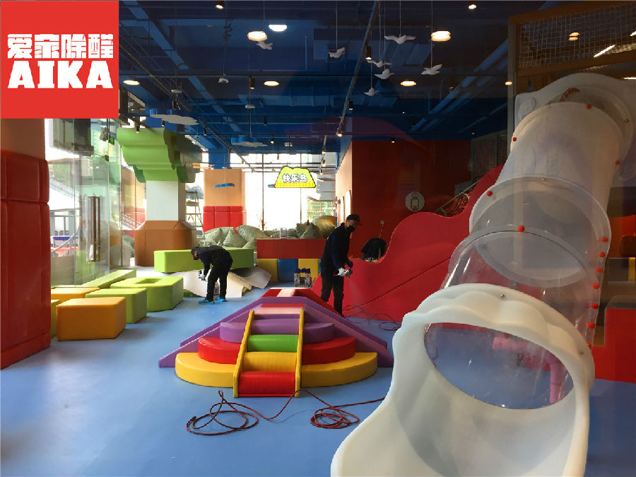 該樂園于2018年12月30日在西安曲江創意谷隆重開業,確保室內空氣質量優于國家標準,使孩子能在新鮮的空氣中學習、玩耍,邀請我們愛家除醛為其進行專業除甲醛,以下是我們專業除甲醛現場圖片。