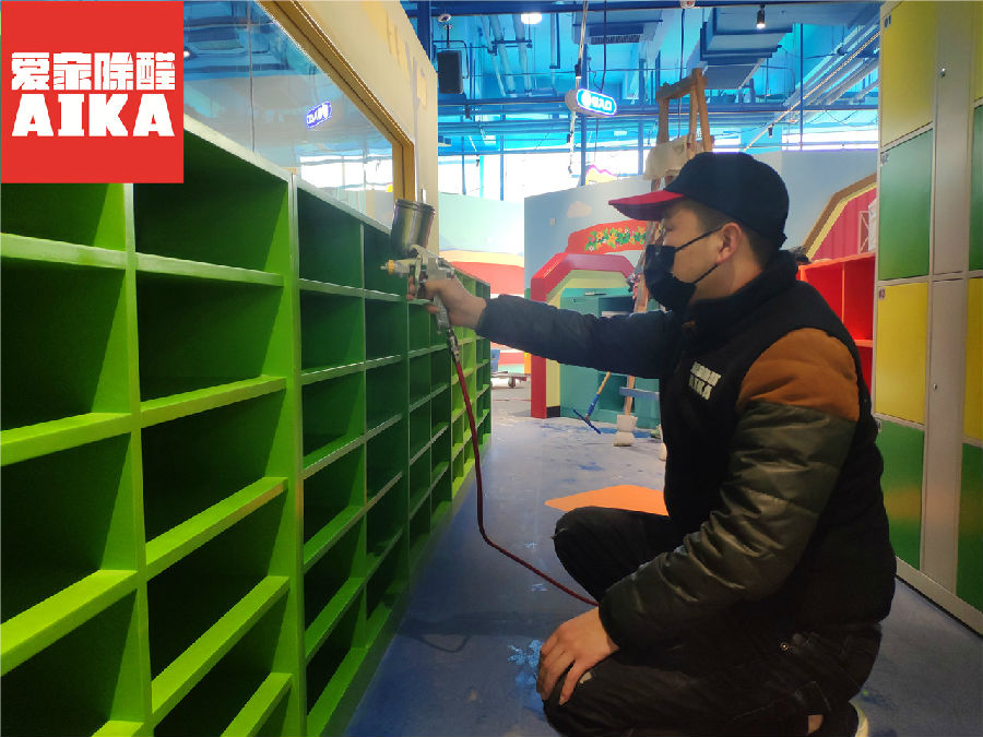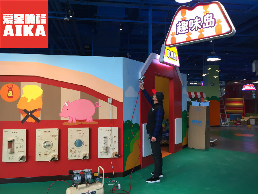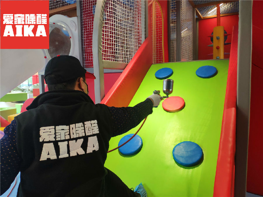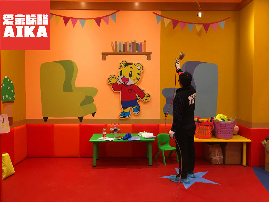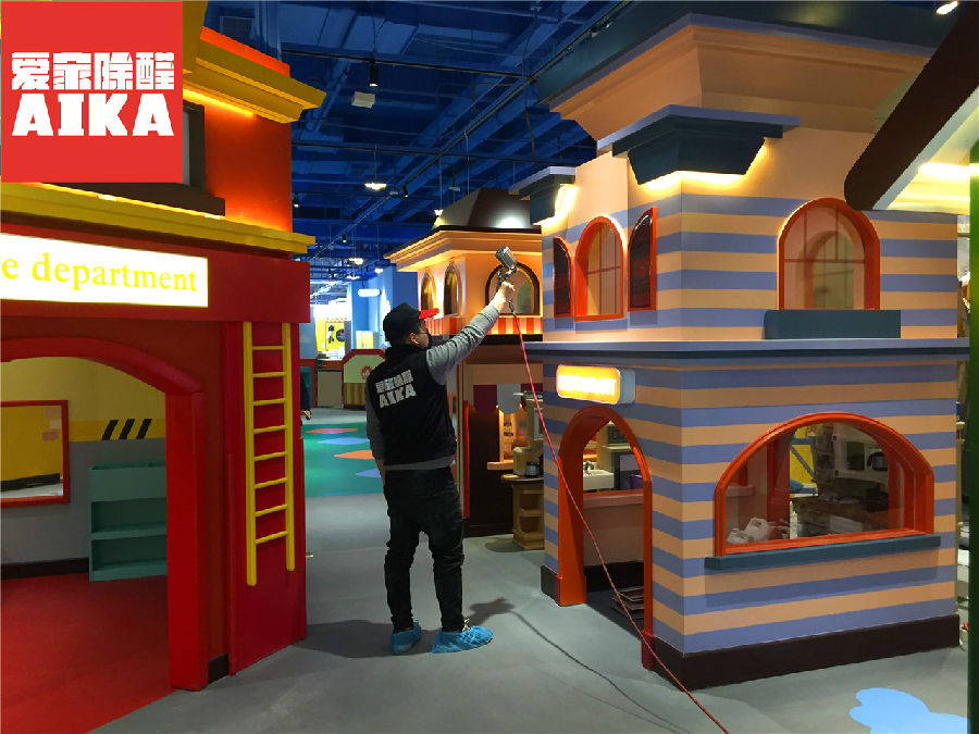 該樂園于2018年12月30日在西安曲江創意谷隆重開業,確保室內空氣質量優于國家標準,使孩子能在新鮮的空氣中學習、玩耍,邀請我們愛家除醛為其進行專業除甲醛,以下是我們專業除甲醛現場圖片。