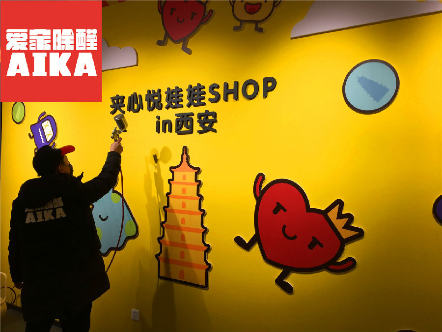曲江創意谷于前幾天開業,我們愛家除醛承擔了好幾個商戶的專業除甲醛任務,今天介紹的這個專業除甲醛案例就是夾心悅娃娃SHOP。