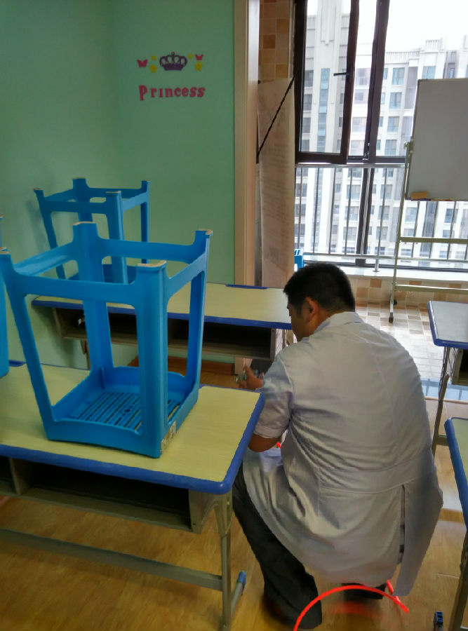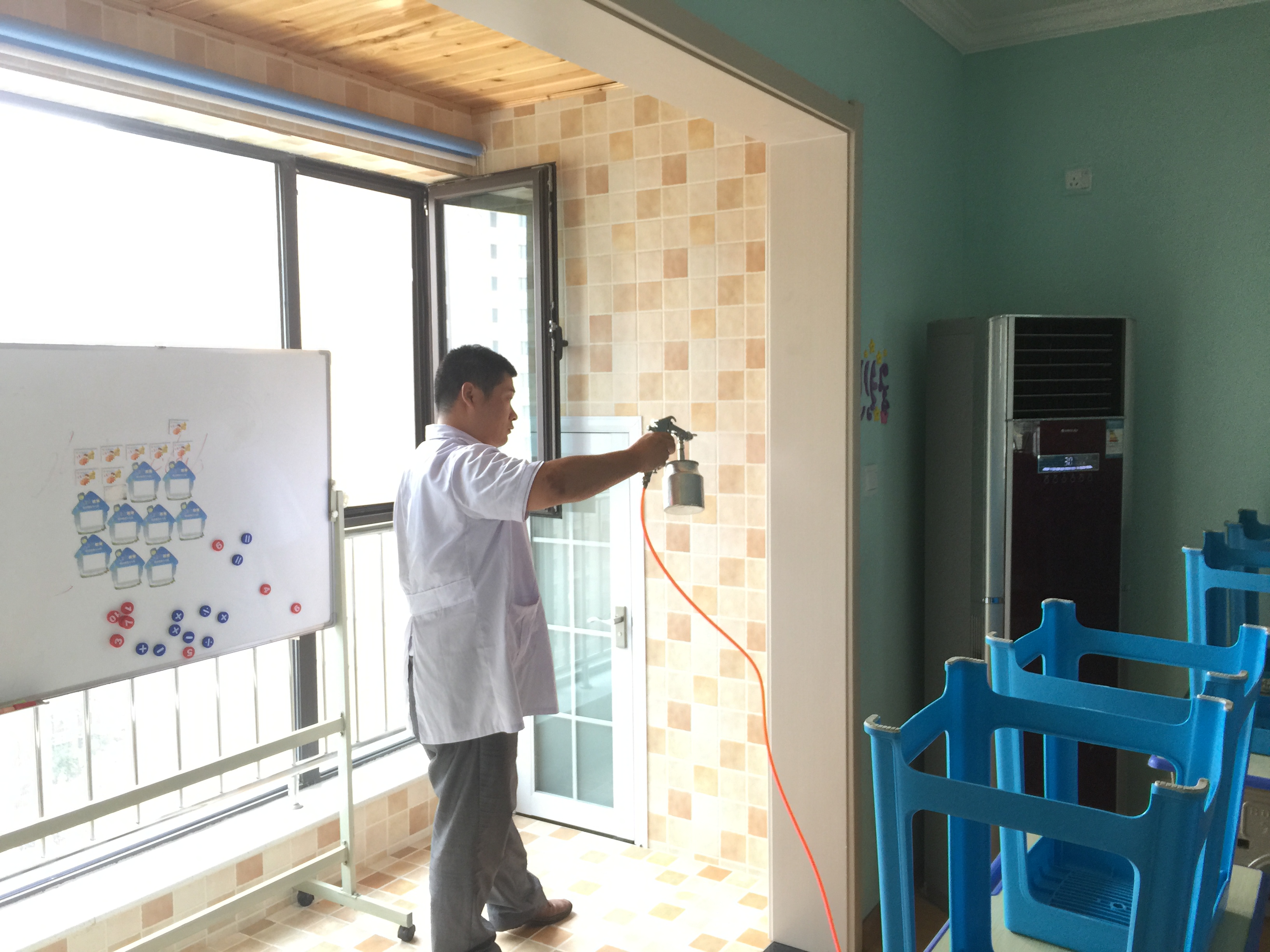 西安曲江千林郡的蔣老師新裝修了一個輔導班,在招生前,蔣老師擔心新裝修的教室和生活區的甲醛含量超標,聽說我們愛家除醛是非常正規的西安甲醛檢測和治理的公司,所以聯系我們愛家除醛,想請我們愛家除醛上門為他們的新輔導班做個正規的甲醛檢測,如果超標的話,直接除甲醛處理。不能讓孩子們在甲醛超標的環境中學習和生活。不能讓有害氣體危害到孩子們的健康。我們愛家除醛上門為這個輔導班做了甲醛檢測,結果顯示,甲醛輕度超標,我們為蔣老師提供方案一是,可以不采用任何措施,只采用通風處理,降低濃度就可以。但是蔣老師考慮到孩子們的身體健康,直接讓我們愛家除醛做個全面的甲醛治理。以下為現場施工照片。
