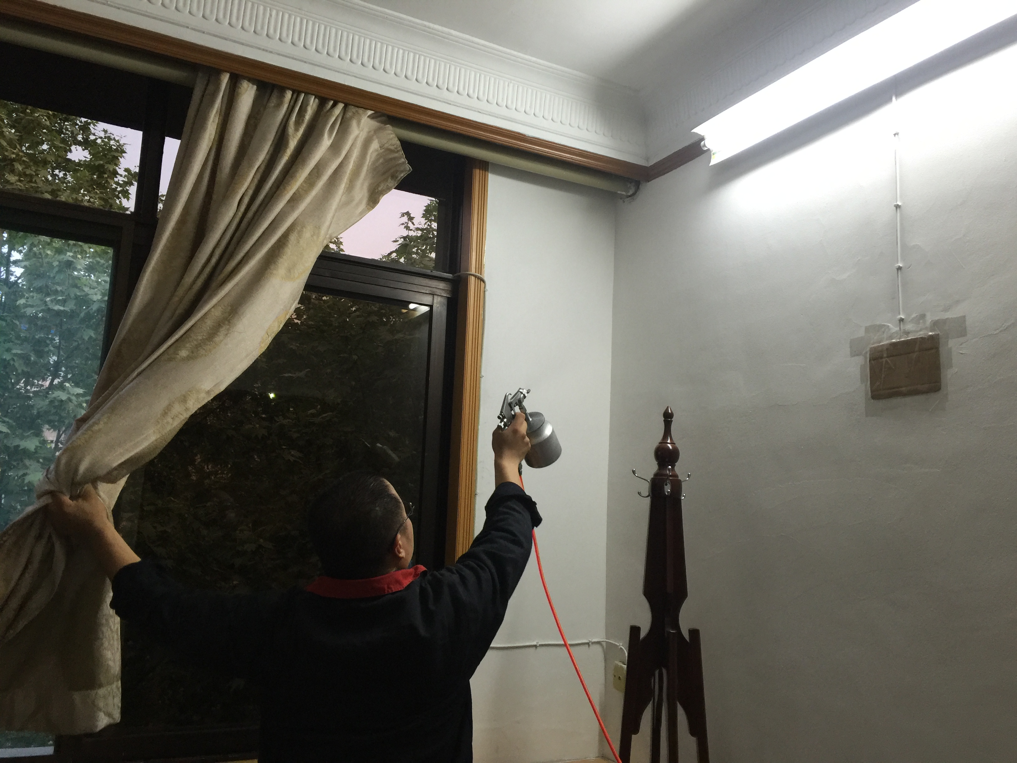 昨天我們愛家除醛為西安市某單位辦公室除甲醛,該辦公室最近剛剛二次粉刷完畢,屋子里乳膠漆散發著濃濃的味道。辦公室領導要在星期二搬進這里辦公。考慮到乳膠漆有甲醛和氣體有害氣體可能會對身體造成傷害,于是自己掏腰包,請我們愛家除醛前去除甲醛。我們的工作人員在現場為該辦公室做乳膠漆墻面專項治理。