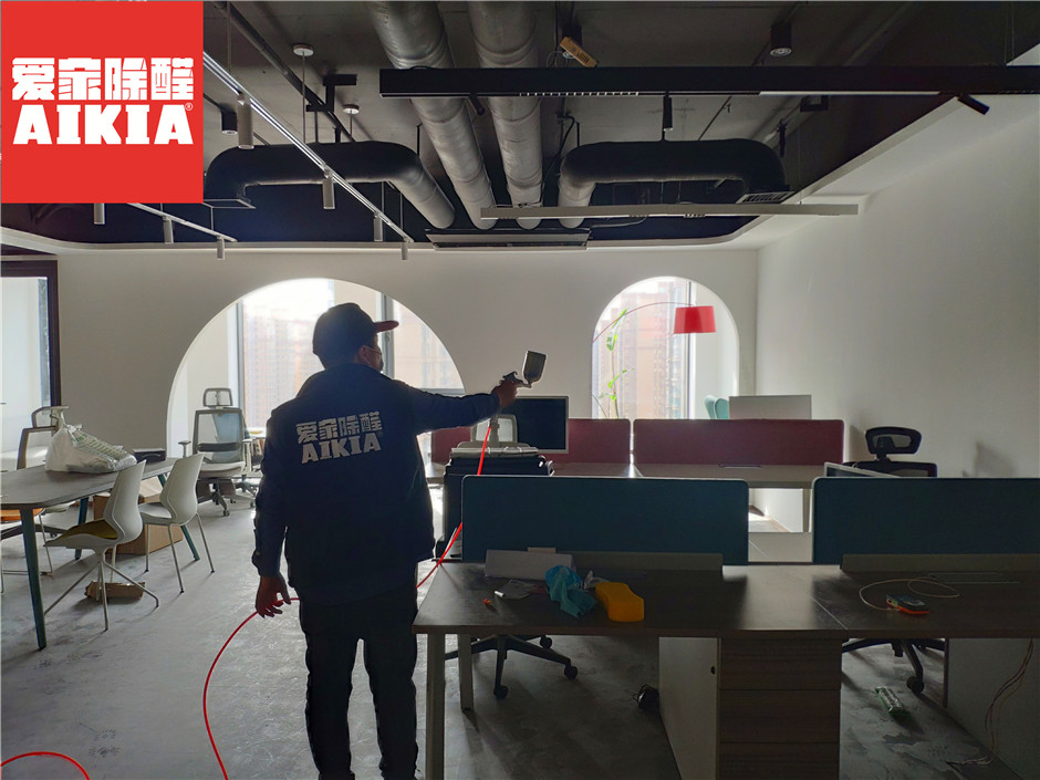 近日我們專業除醛機構愛家除醛AIKIA受唐聿工作室邀請為他們新裝修的工作室進行專業除甲醛。這個工作室裝修的很漂亮,主要污染來源為地膠墻面家具,我們針對不同材質的污染源進行了專項的治理。確??臻g各項有害氣體能夠在短時間內達到遠低于國標的標準,而且永遠不會復發。