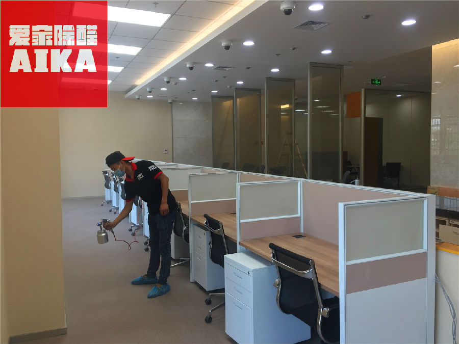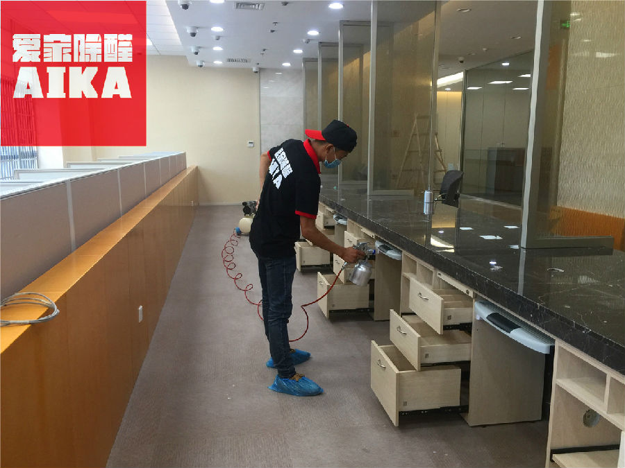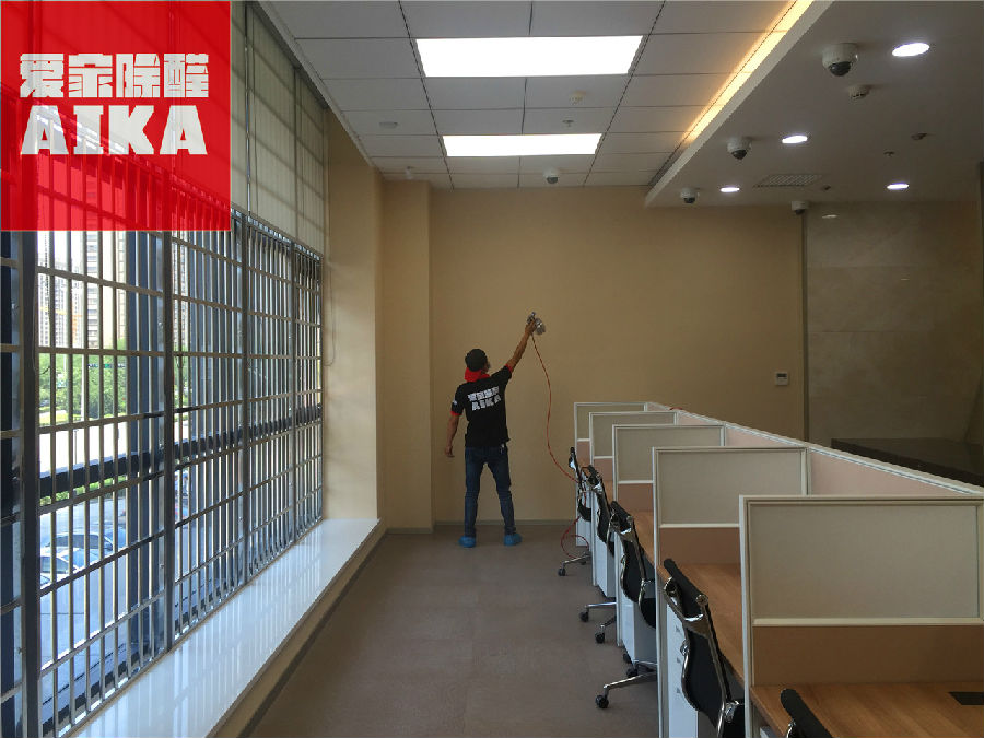 銀行領導高度關心職工的身體健康,在新行投入使用前期,特邀請我們愛家除醛為該銀行除甲醛,確保新辦公大樓在投入使用后,能夠擁有五星級室內空氣質量。