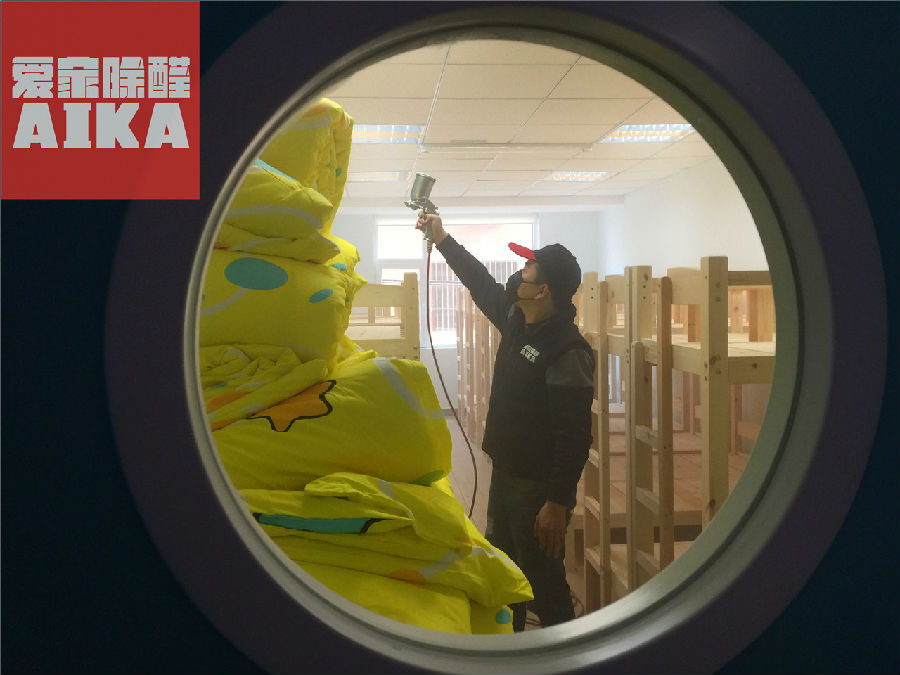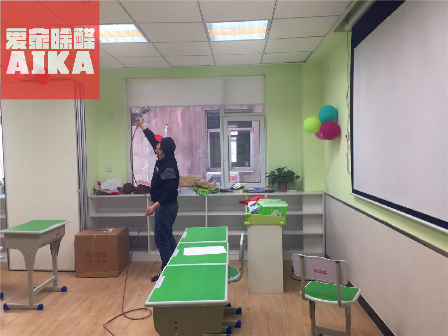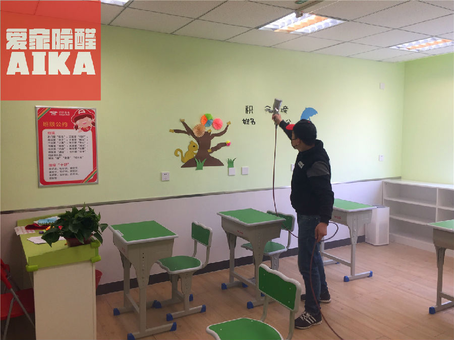 愛家除醛石家莊分公司對(duì)滄州鳳凰城小學(xué)貝爾安親除甲醛