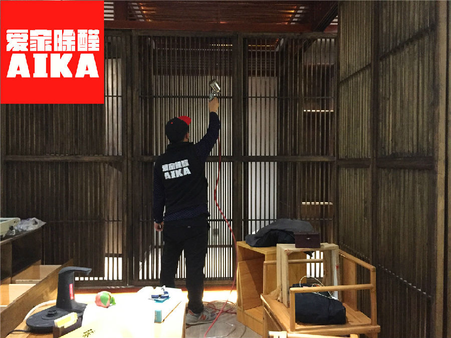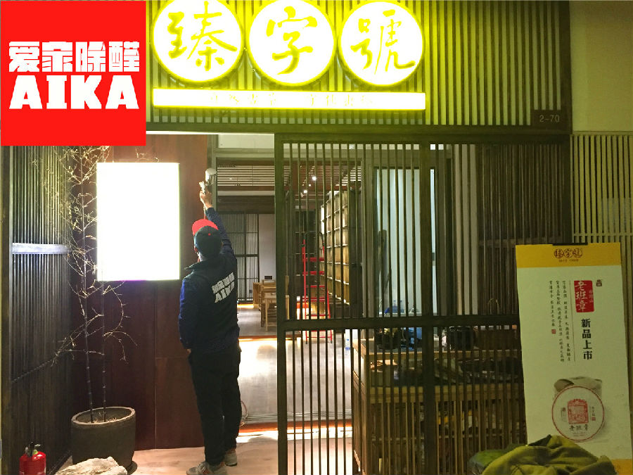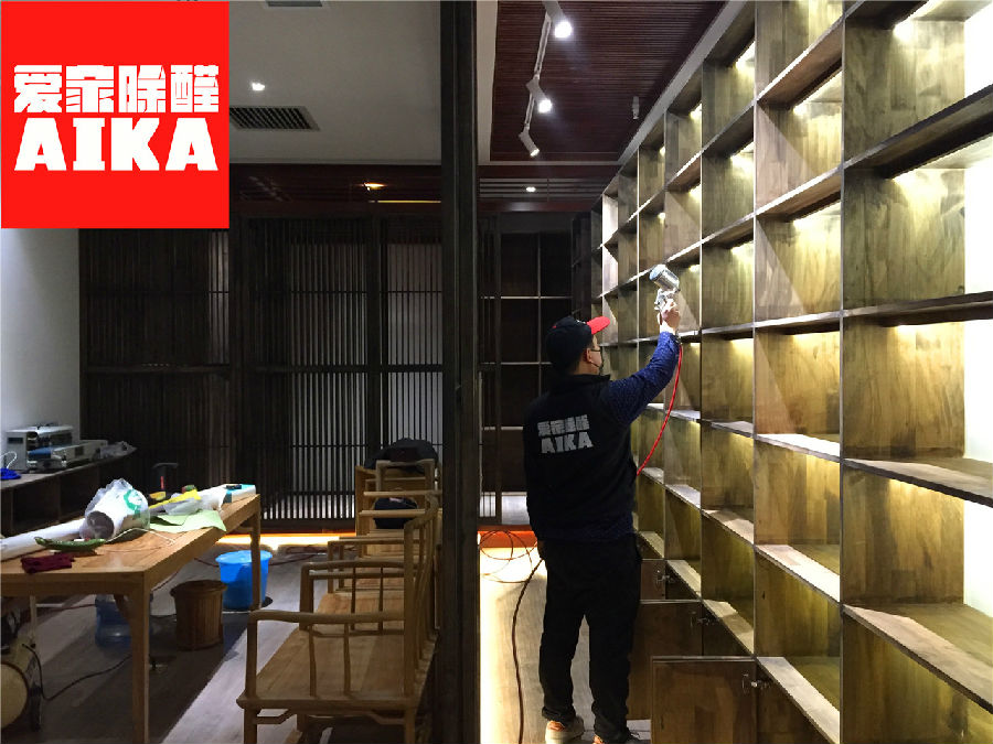 好茶莊的幾個重要指標:茶葉好!環境好!空氣好!空氣好就要除甲醛,西北國際茶城臻字號店近日裝修一新,由于現場用了很多的木制家具,所以現場味道非常的大,茶店老板非常注重環保,為了能夠在開業的時候給客戶提供一個非常愜意的品茶環境,所以特邀我們愛家除醛為其茶店進行專業室內除甲醛。