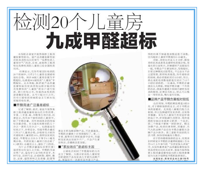 兒童房甲醛污染現(xiàn)象越來(lái)越嚴(yán)重,經(jīng)權(quán)威機(jī)構(gòu)檢測(cè):