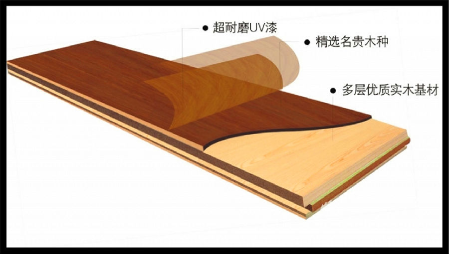就字面上的意思可以理解,這種地板第一層面板是實木,下面是其它板材。你可以把實木復合地板想象成威化餅干。
