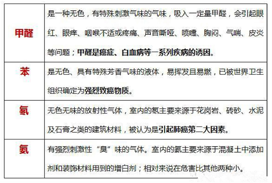 甲醛、苯、氡、氨等裝修污染氣體的危害有多大